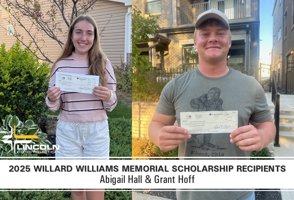 Lincoln Construction is pleased to announce we were able to award not one … but two Willard Williams Memorial Scholarships this year. Offered through Associated General Contractors of Ohio – congratulations are extended to Grant Hoff and Abigail Hall!